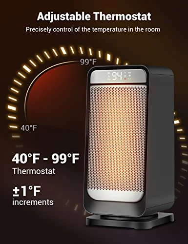 - EASY TO USE: A bright LED display touchscreen makes selecting different modes simple. A 20-feet remote means you can even change settings from your bed! The compact design makes our space heaters a real space saver.