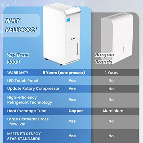 - MOST EFFICIENT 2023 ENERGY STAR: Vellgoo dehumidifier are recognized as ENERGY STAR Most Efficient deliver cutting edge energy efficiency along with the latest in technological innovation. They represent the very best for energy savings and environmental protection. Thank you for your contribution for evergy savings and environmental protection