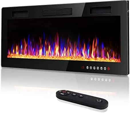 - 🔥【Multi-Function】: Remote and touch screen make it more convenient to control every function of electric fireplace, power switch, 1 to 8 hours timer control, independent switch of heating and flame,adjustable flame color and speed, sleep mode function