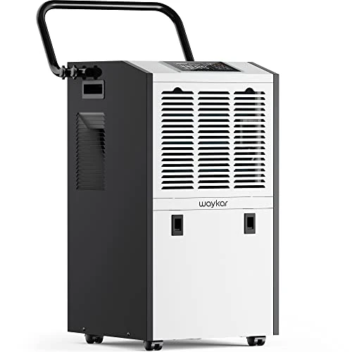 - INNOVATIVE & ERGONOMIC DESIGN: Waykar Commercial Dehumidifier features with sleek and modern look, with easy-roll universal castors, ergonomically recessed handles and lift up handle, which allows you move it anywhere with ease. AUTO DEFROST when coils iced up, ensuring worry-free operation. Power Outage Auto Restart save your time to set the machine again after a sudden power off.