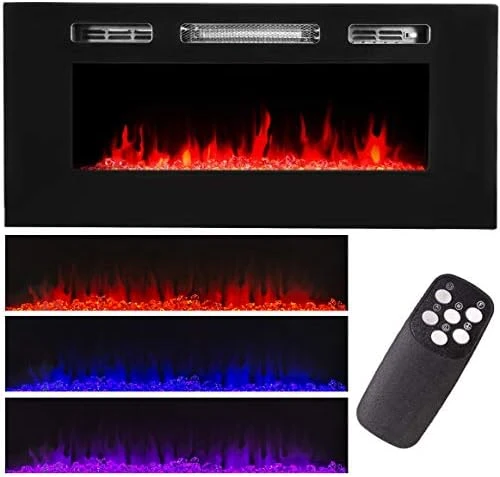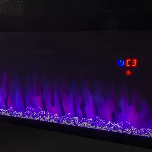 - Realistic Flame Effects To create the cozy atmosphere of a traditional fireplace, this electronic unit emits authentic-looking flames that emulate a real fire. It has three color changing options, along with multiple settings, from a soft ember glow or an intense blaze. Heat and flame settings can be operated through a remote control