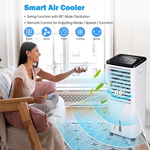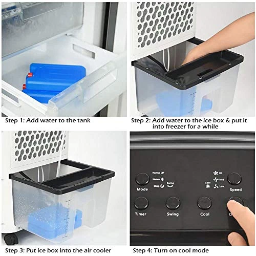 - [Easy to Operate]: Simply add water into the 17L water tank and put the ice boxes in the tank for better cooling effect, then turn on the air cooler; Comes with a remote control for easily adjusting the mode, speed, function and timer while you are resting in bed